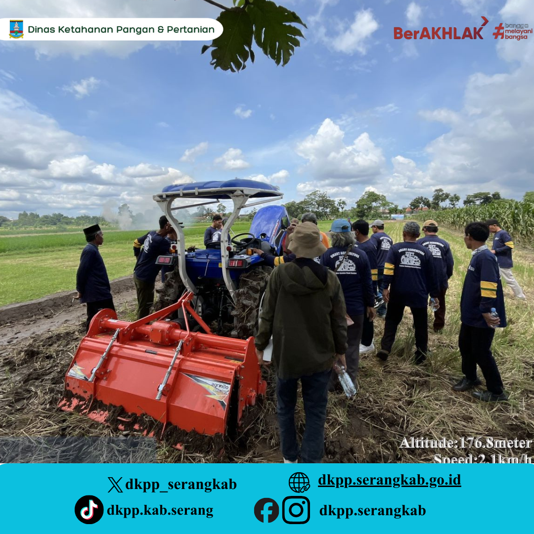 Dinas Ketahanan Pangan dan Pertanian Kabupaten Serang melaksanakan pendampingan pelatihan pengoperasian dan perawatan traktor pertanian roda empat ISA IT445 bagi para ketua dan operator Poktan penerima Alat dan Sarana Pertanian.